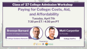 CGN is offering a monthly series of live workshops designed for the Class of ‘27. In this session, we’ll share actionable guidance on: Understanding financial fit and what college really costs - How to assess your family’s ability to pay, estimate net ...